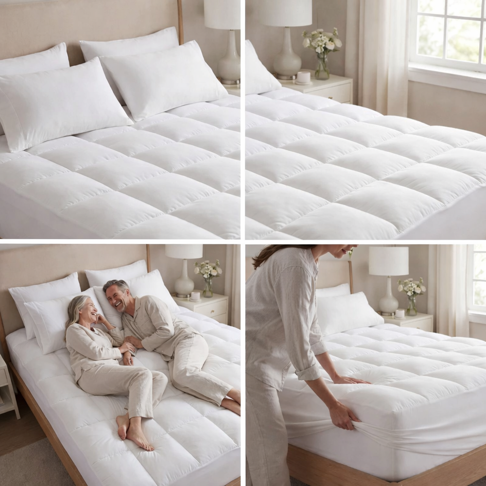 Unlike cheaper alternatives, our topper features 1000GSM ultra-thick padding, which is three times denser than standard options. This premium construction ensures it maintains its hotel-quality plushness and supportive structure night after night, so you can enjoy a cloud-like sleep experience without worrying about it losing its shape.